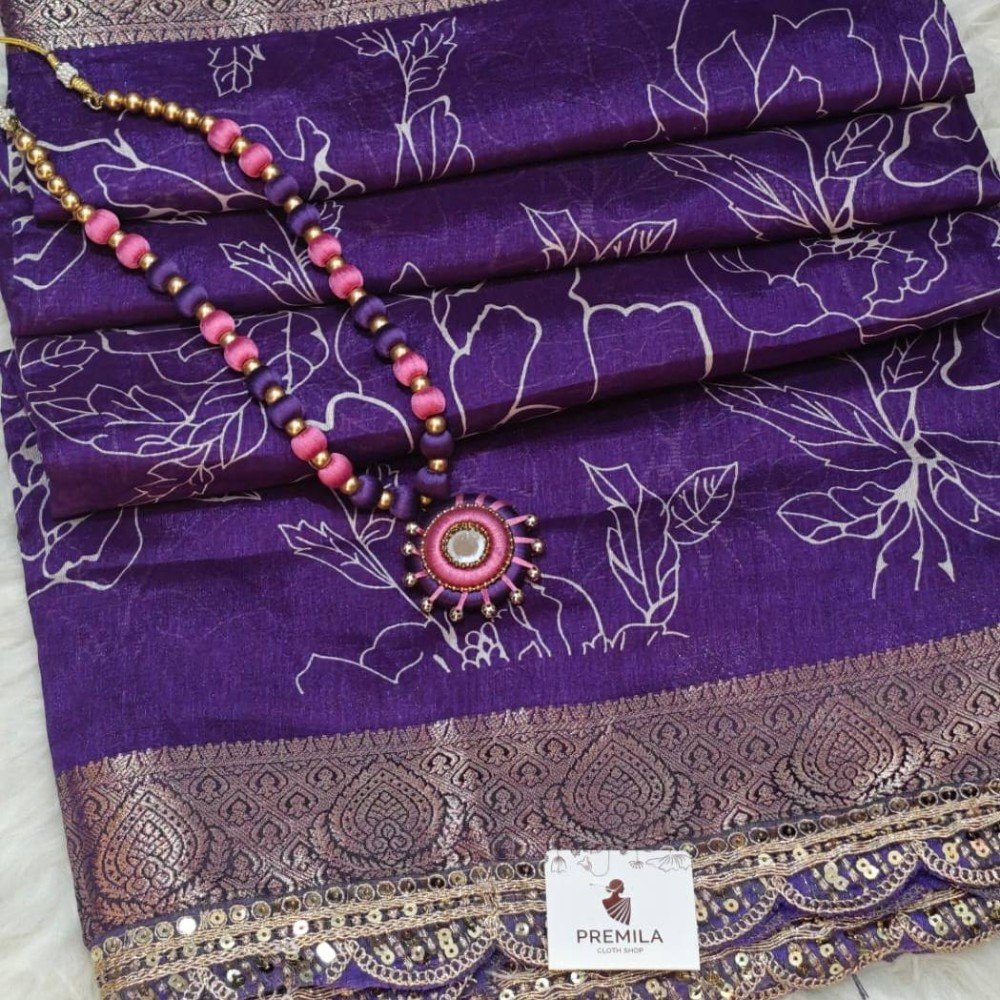 Name | Dola Printed Saree with Scallop Lace Work All Around the Saree |