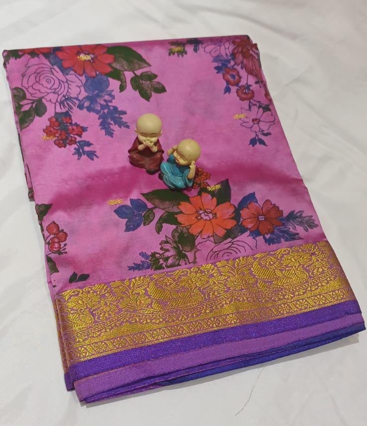 | Name | Digital Printed Art Silk with Copper Zari and Gold Zari Border |