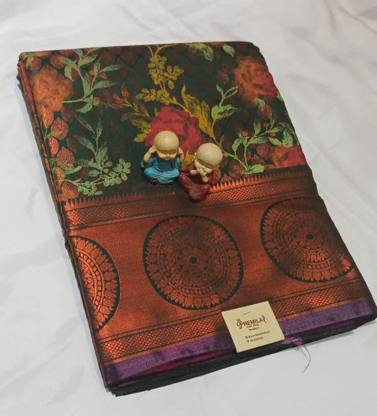 | Name | Digital Printed Art Silk with Copper Zari and Gold Zari Border |