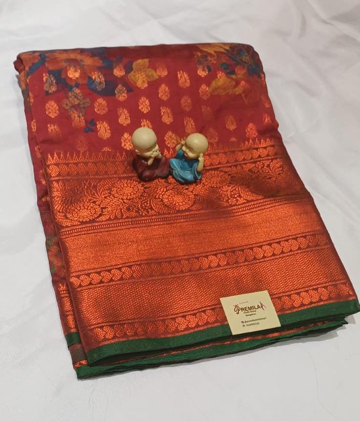 | Name | Digital Printed Art Silk with Copper Zari and Gold Zari Border |
