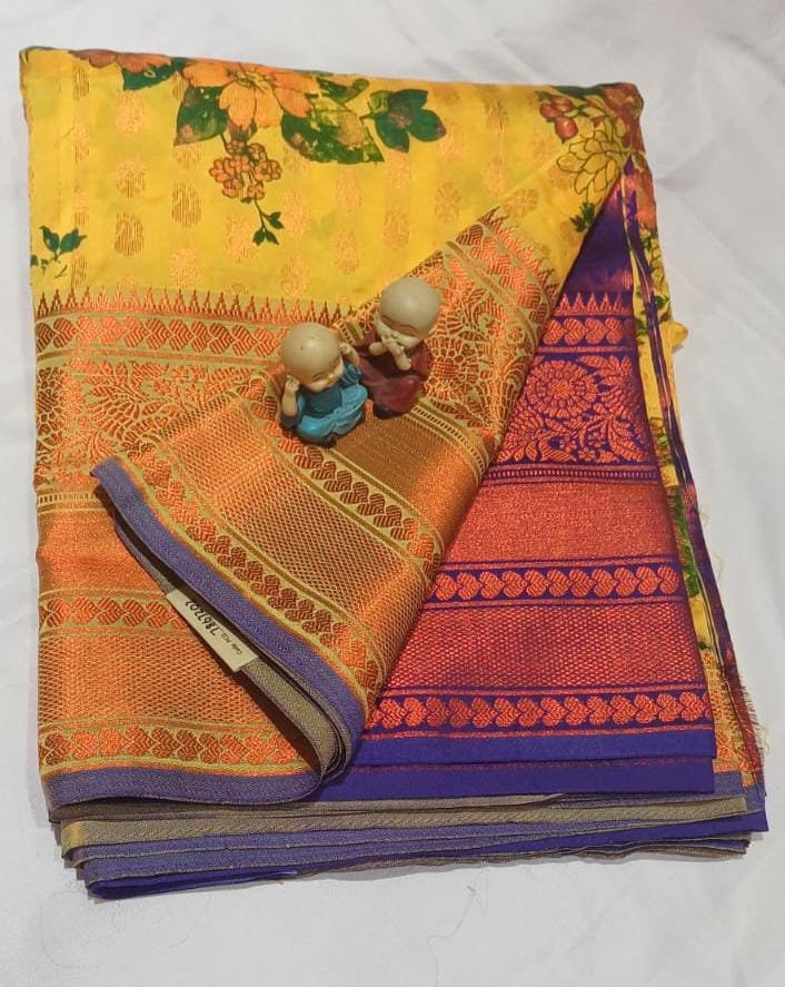 | Name | Digital Printed Art Silk with Copper Zari and Gold Zari Border |