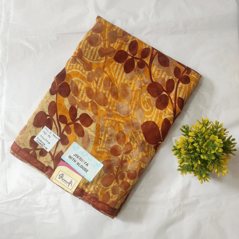 Georgette saree with blouse and lace border