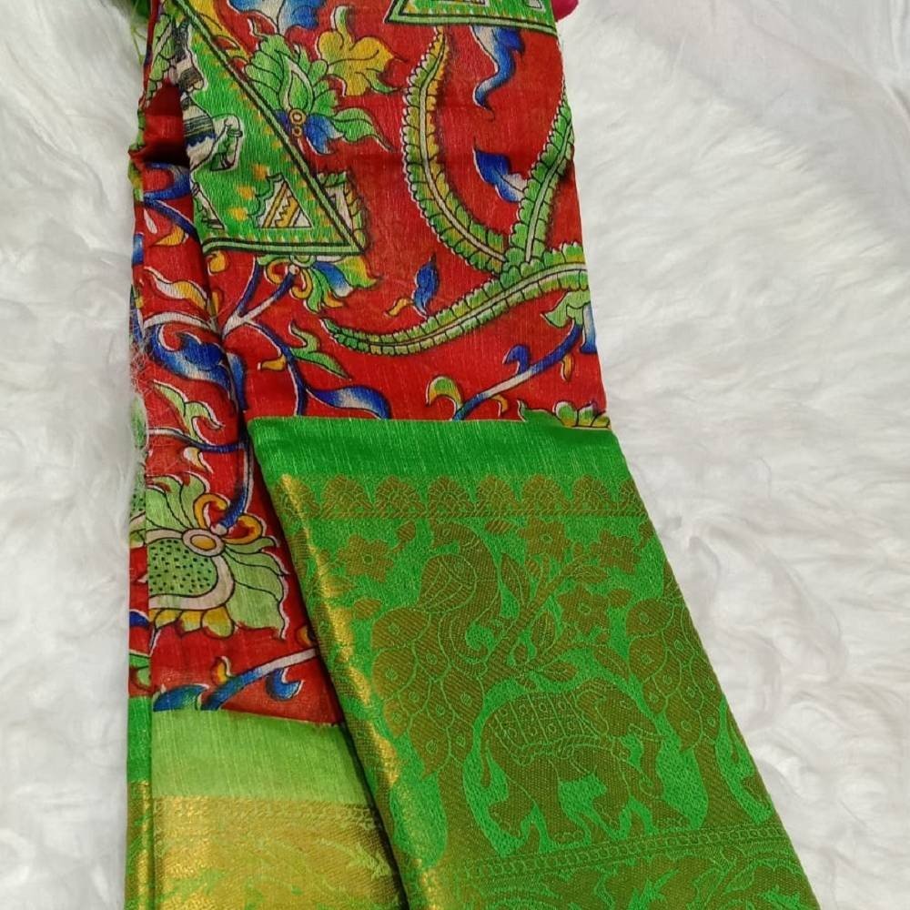 Be the first to review “Kalamkari Printed with Gold Zari Border Red” Cancel reply