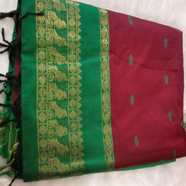 Be the first to review “Kalyani Cotton Saree Maroon with Green”