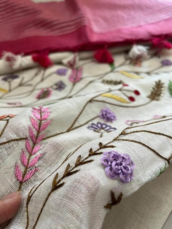 Linen cotton with hand embroidery work