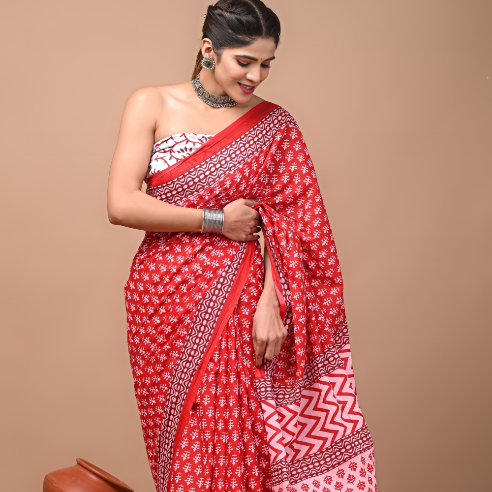 Mulmul sarees, also known as mul sarees or muslin sarees, are a type of traditional Indian attire known for their lightweight and airy texture. Made from fine cotton yarns, mulmul sarees are incredibly soft and comfortable, making them ideal for everyday wear, especially during hot and humid weather.